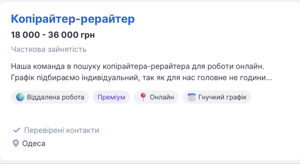 Заробіток копірайтера в Україні залежить від обсягу та складності роботи й може сягати $200–500 на місяць.
