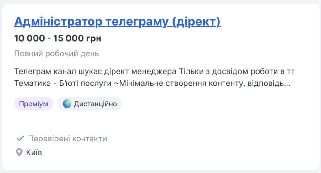 Адміністратор Telegram-каналу відповідає за створення та публікацію контенту, взаємодію з підписниками, а також пошук рекламодавців. Завдання можуть включати створення постів, проведення опитувань, модерування коментарів і управління рекламними інтеграціями.