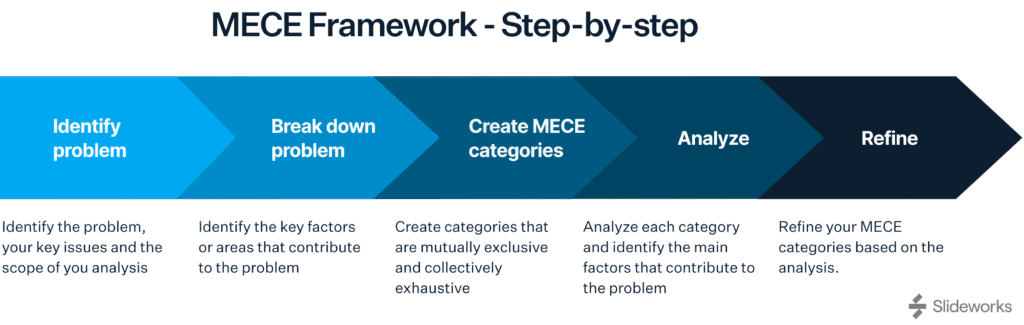 Щоб ефективно використовувати MECE, потрібно дотримуватися кількох кроків: