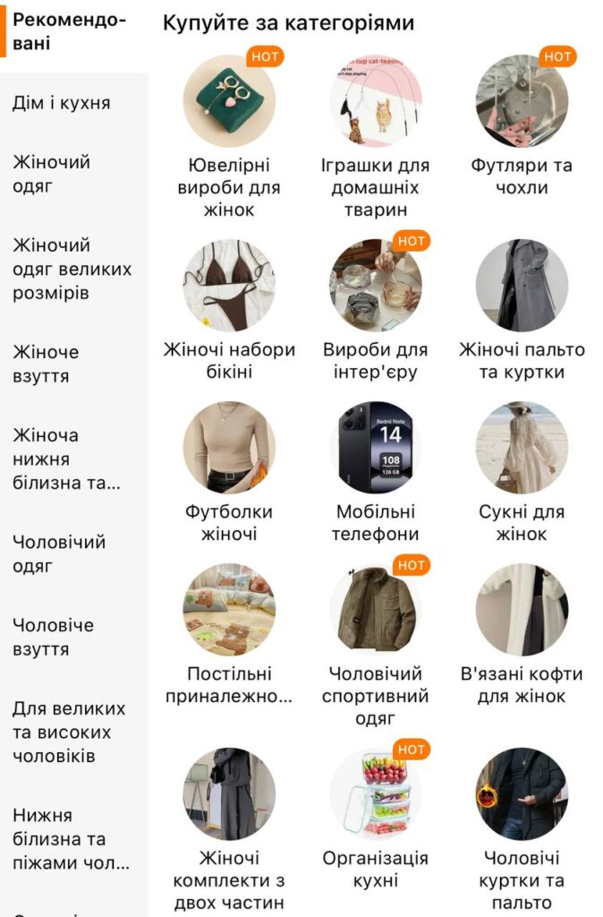 - Перегляньте категорії (одяг, електроніка, товари для дому).