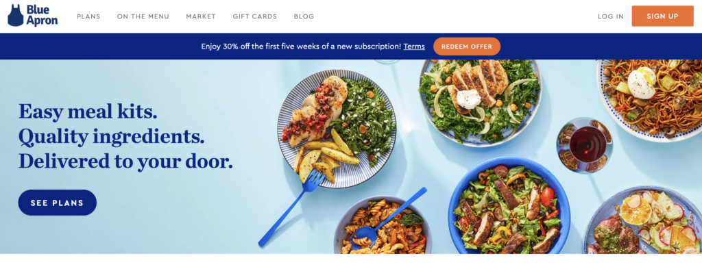 Blue Apron, служба доставки обедов, обнаружила пробел на рынке удобных наборов для приготовления пищи с доставкой на дом для занятых профессионалов. Их ниша была ориентирована на людей, которые заботятся о своем здоровье и хотели получать свежие ингредиенты и легкие в приготовлении блюда с доставкой на дом.