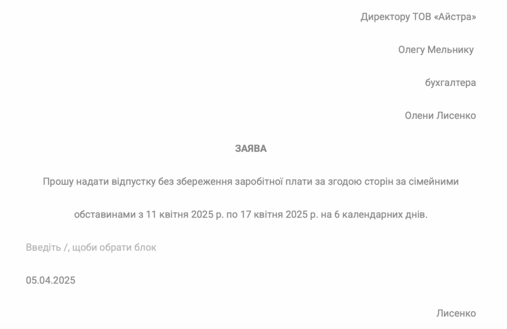 Это не просто «попросить в устной форме». Заявление фиксирует намерение работника и запускает внутреннюю процедуру: согласование, подпись, выдача приказа. Без него — отпуск считается неофициальным, а отсутствие на работе — прогулом. А это уже не весело.