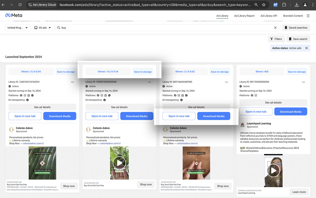 …Facebook Ads Library создает полную картину рекламного присутствия бренда в Meta.